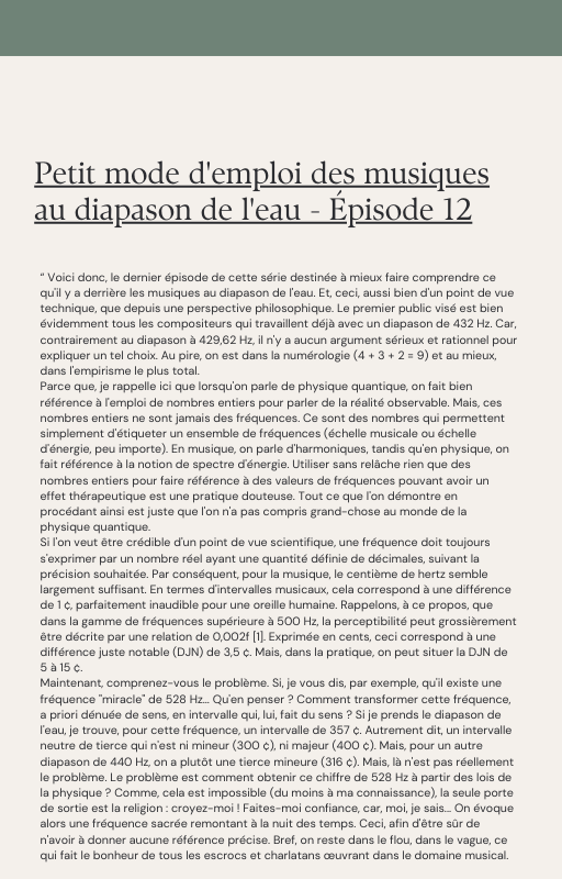 Les Musiques au diapason de l’eau (429,62 Hz)
